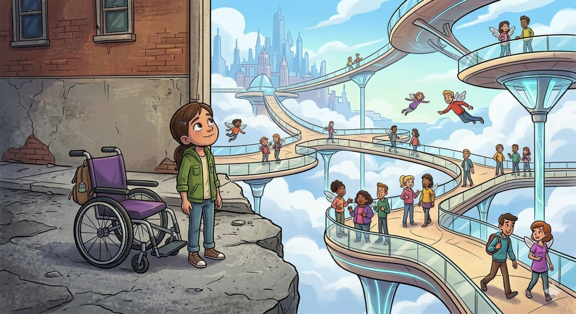 Hvis alle kunne flyve men du kun kunne gå ville du være lige så handicappet, som jeg er som kørestolsbruger i en verden der primært er indrettet for gående – socialt og adgangsmæssigt