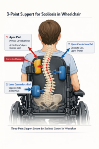 Aflastning og afhjælpning af scoliose med 3 punkt rygstøtteStandard strop ryg eller fast ryg som Matrx eller Jay Som udgangspunkt for 3-punkts korrektion af skoliose i kørestol er det vigtigste…