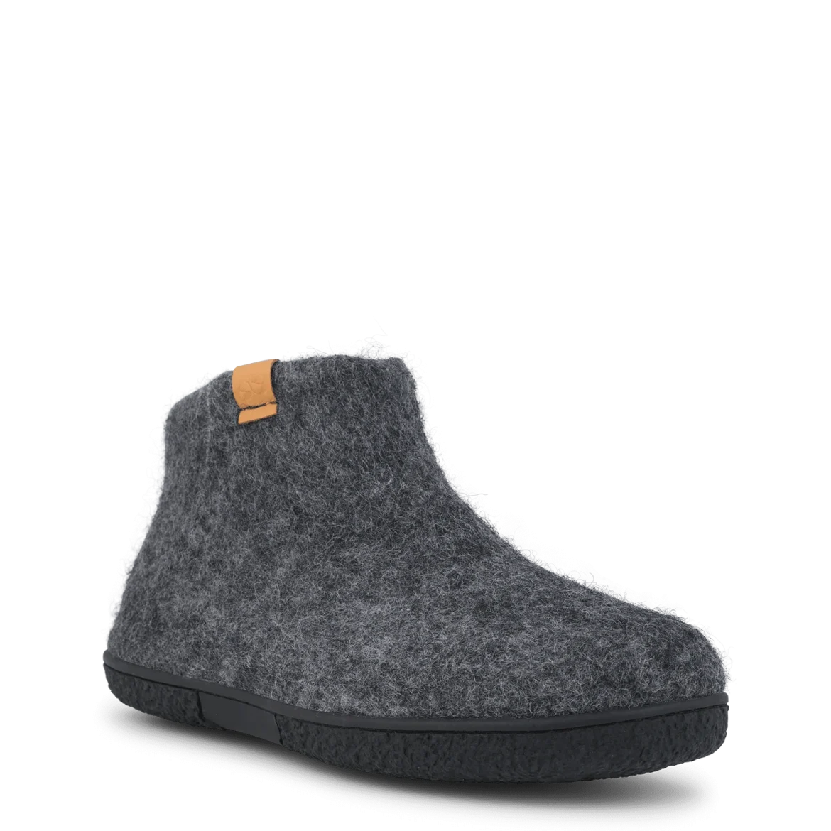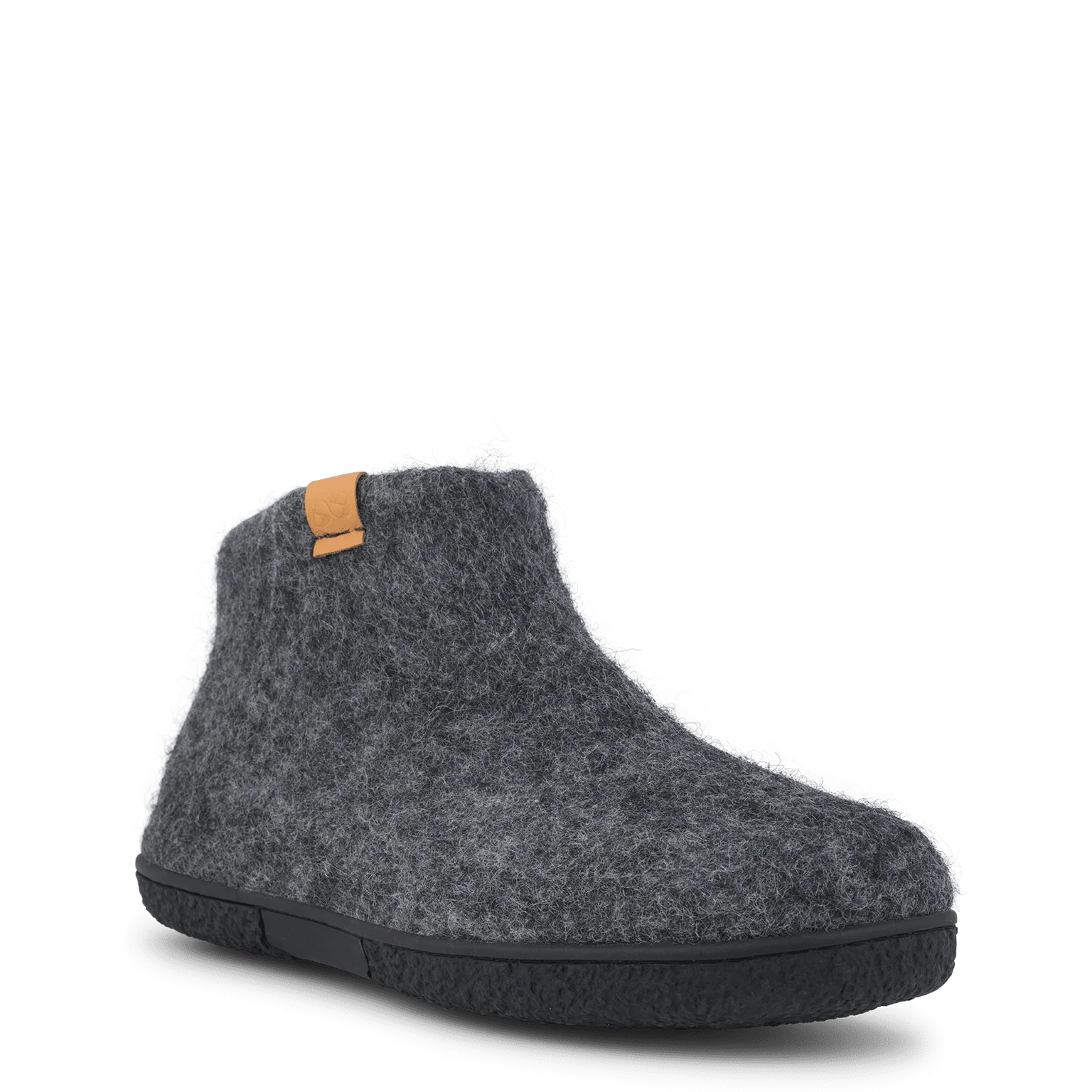 Ulden er håndfiltet i Nepal, hvor produktionen af vores uldhjemmesko foregår. Ulden er skånsomt filtet i varmt sæbevand. På den måde bevares det høje indhold af lanolin i ulden – og det sikrer, at ulden ikke kradser og er nem at holde ren. Normalt skal skoene vedligeholdes ved børstning og luftning. Produktionen sker naturligvis uden kemikalier og syntetiske stoffer og giver arbejde til en stor del kvinder i det fattige bjergland.